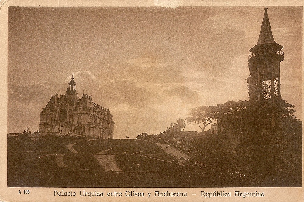 Esta postal muestra el Palacio La Lucila situado a lo lejos. La mansión fue terminada de construir hacia el año 1915 y estaba ubicada en una de las fracciones correspondientes a la extensa Quinta de los Olivos, de la familia Anchorena, ubicada en las actuales calles Darwin y Debenedetti, entre el Río de la Plata y la Av. Bartolomé Mitre. Nicolás Paulino Anchorena le donaría esa fracción a su hermana Lucila. El Palacio recibiría su nombre en su homenaje.