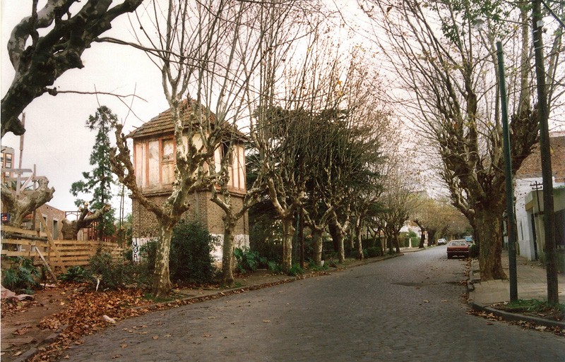 Esta imagen captura la antigua toma de agua situada en la calle Juan Bautista Alberdi al 800, entre Catamarca y Rioja, en el barrio de Olivos, frente al cine-teatro York.