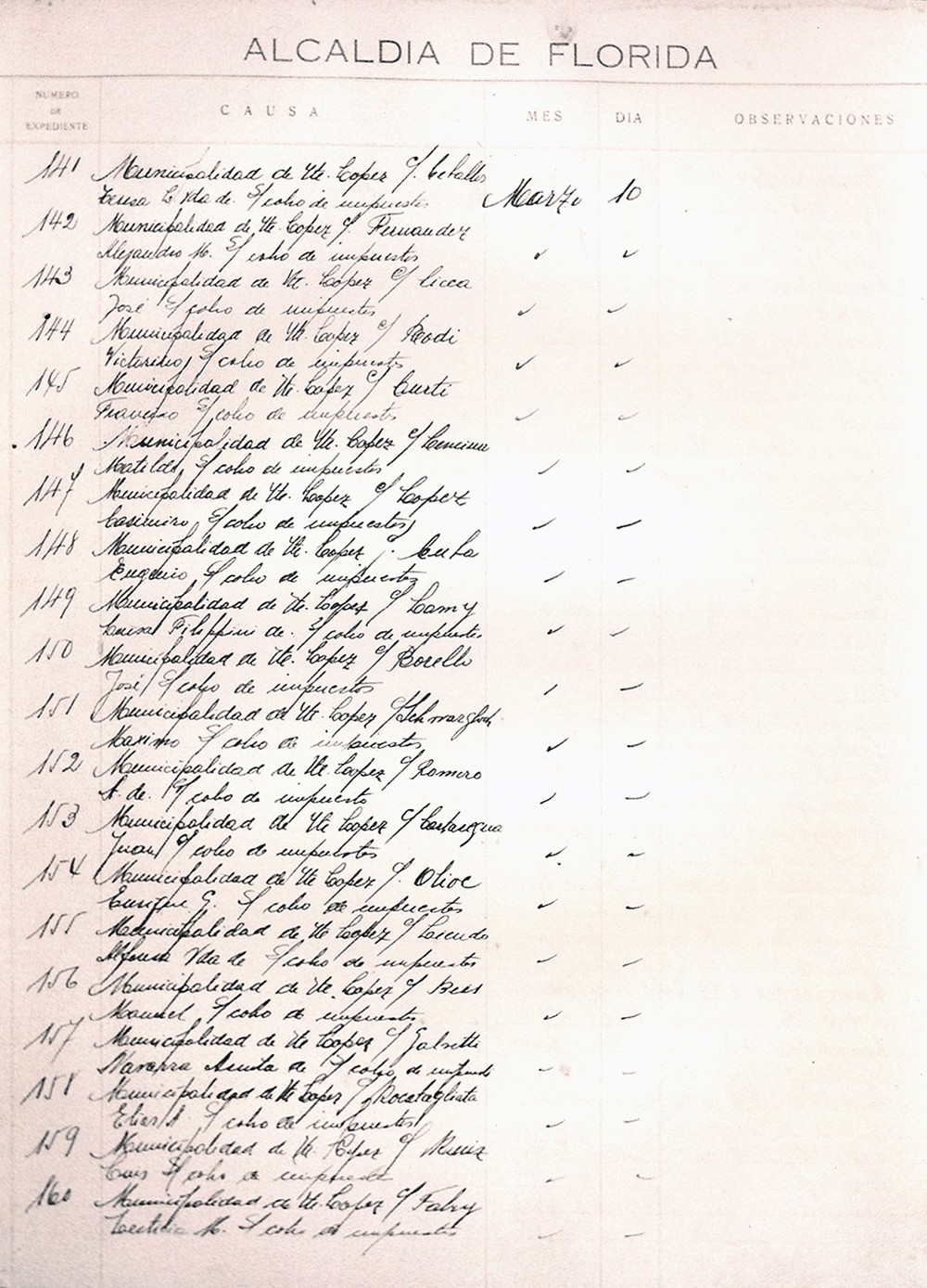 Copia de foja del Archivo Judicial de San Isidro, relacionada con la Alcaldía de Florida. El trazado del pueblo de Florida fue aprobado el 7 de mayo de 1891 por decreto del entonces Intendente de San Isidro, Francisco Pitt.