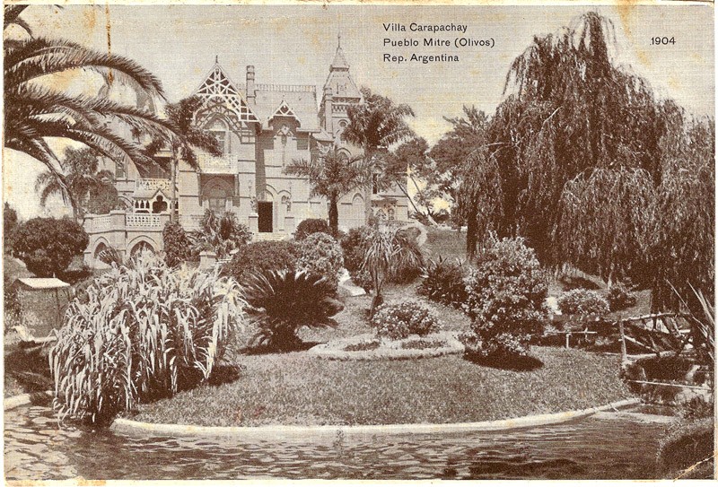 Postal del Hotel Carapachay en Pueblo Mitre, datada en 1904. El término Pueblo Mitre o Mitre de Olivos, fue uno de los nombres con el cual se denominaba al Paraje de Los Olivos. A partir de este nacería hacia 1905 el partido de Vicente López.