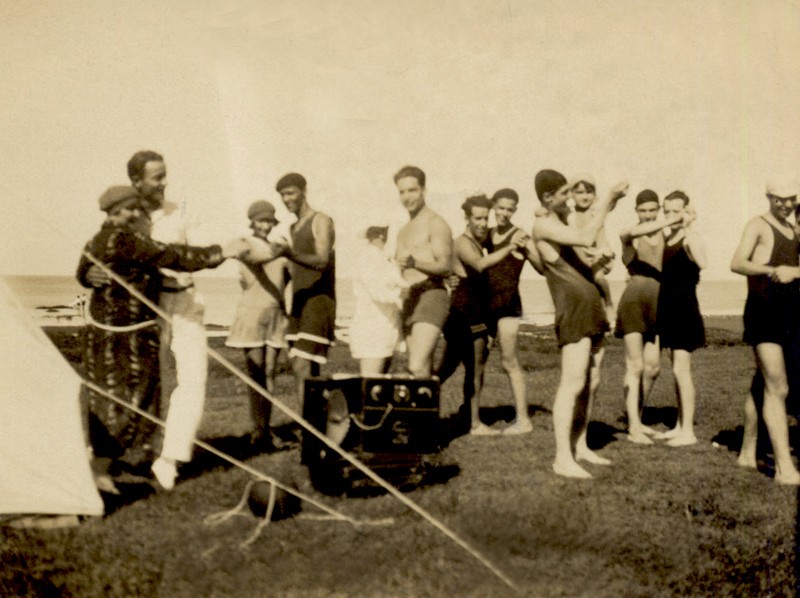 En esta escena, de principios de los años cuarenta, un grupo de hombres y mujeres se reúne para bailar en una de las playas de Olivos, Vicente López.