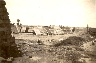Esta imagen presenta el horno de ladrillos propiedad de Lorenzo Sciaini que se encontraba ubicado en la esquina de Laprida y Echeverría. Don Lorenzo Sciaini fue un inmigrante italiano, del pueblo de Lombardía, que llegaría a la Argentina a los 14 años de edad, en el año 1890.