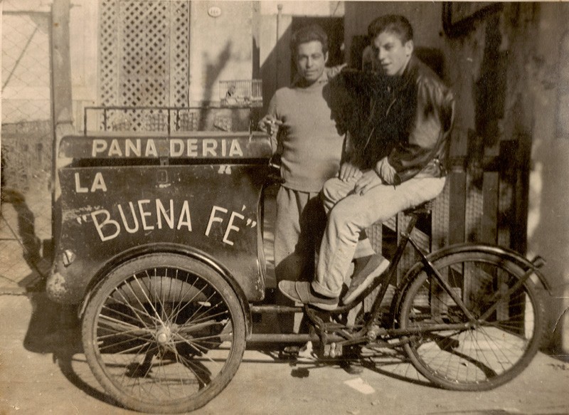 Dante Alessandrini y Orlando Paredes en el reparto de la Panadería La Buena Fe de Villa Martelli. Dante fundaría con su hermanos Delio, Orestes y Alfredo la panadería hacia el año 1948. La misma se localizaba en la calle Perú 146.