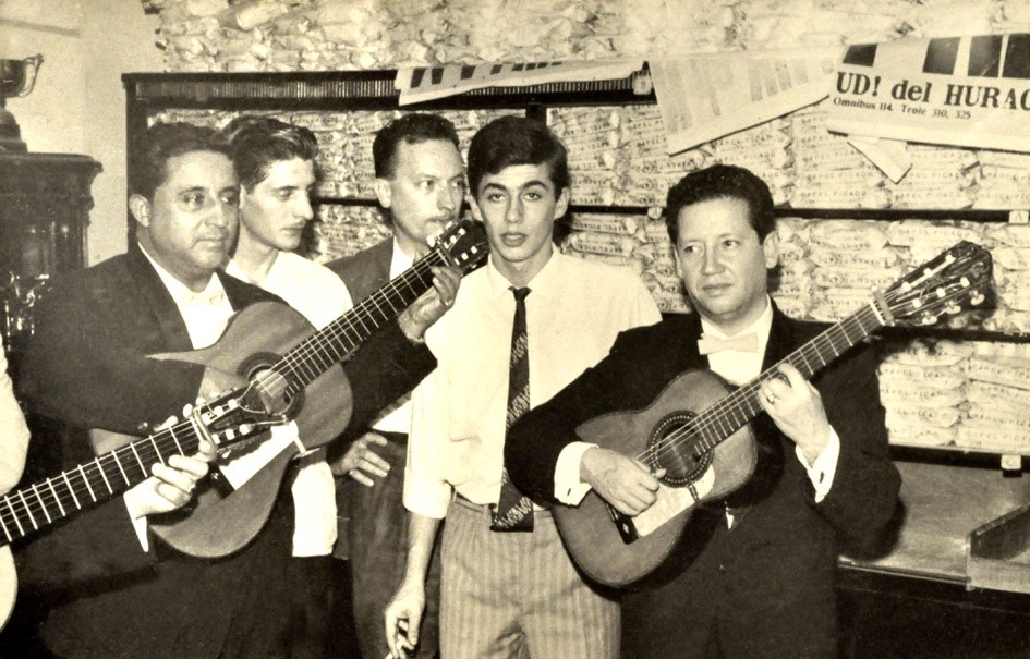 El Trío Los Panchos, los mexicanos Alfredo "El Güero" Gil y José de Jesús "Chucho" Navarro, junto al puertorriqueño Hernando Avilés, en el Club Huracán de Villa Martelli.