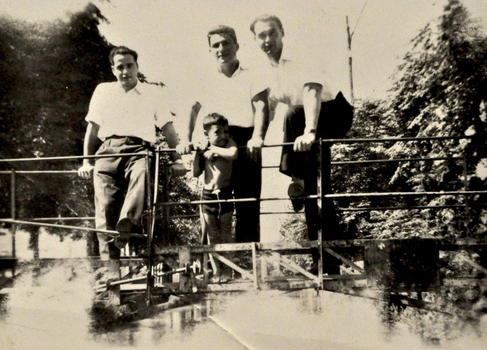 Eduardo Libertella junto a dos amigos se encuentran en el puente de Bernardo de Irigoyen y Las Heras durante una inundación en el barrio Padilla. Se lo denominaba de esta manera por estar ubicado en las cercanías de la estación Padilla del hoy ferrocarril Gral. Belgrano, ramal Retiro - Villa Rosa.