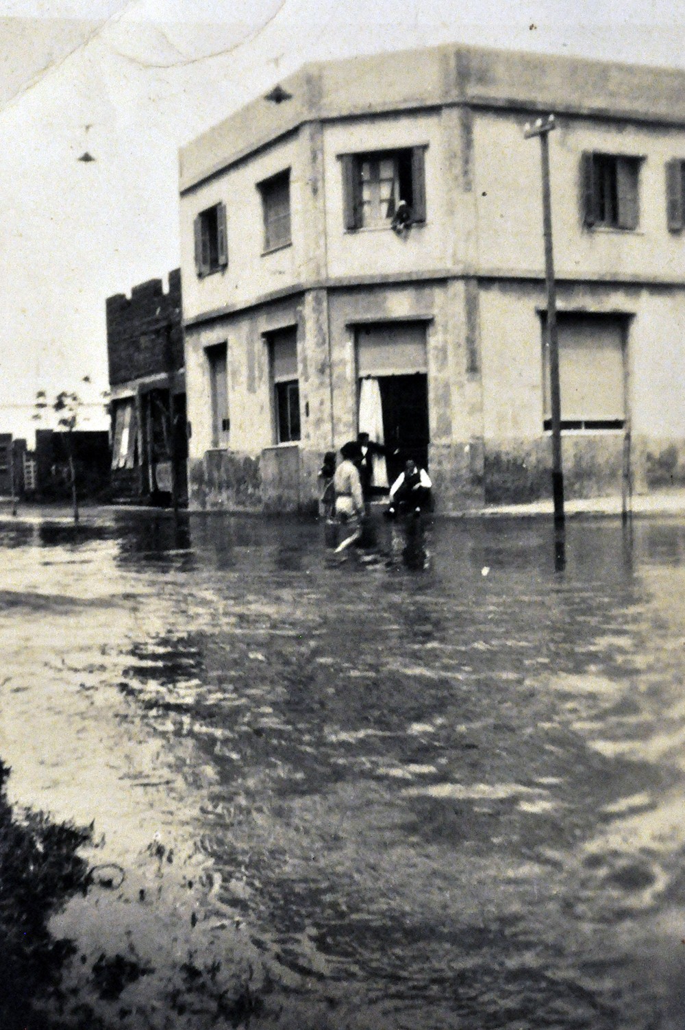 Bernardo de Irigoyen y Las Heras, barrio Padilla, durante la inundación de 1939. Se denominaba barrio Padilla por estar ubicado en las cercanías de la estación Padilla del hoy ferrocarril Gral. Belgrano, ramal Retiro - Villa Rosa.