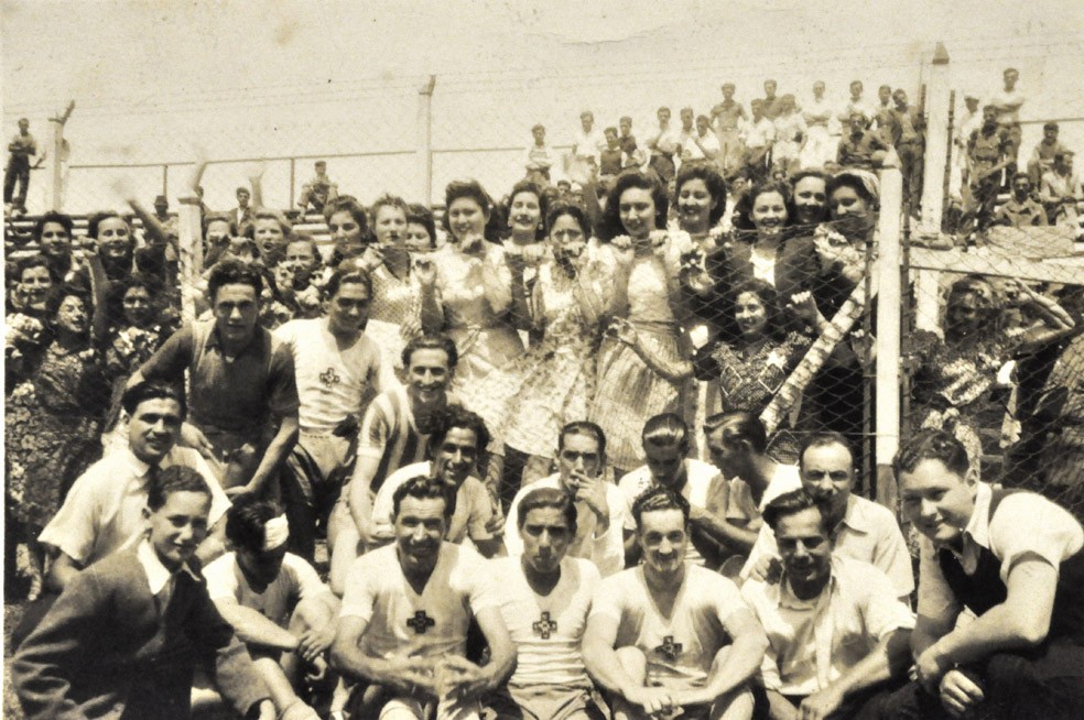 Equipo de empleados de Hidrófila Argentina en la cancha de Colegiales en Munro. Hidrófila Argentina era una empresa textil que se encontraba ubicada en la calle Florentino Ameghino al 1200, en Florida Oeste.