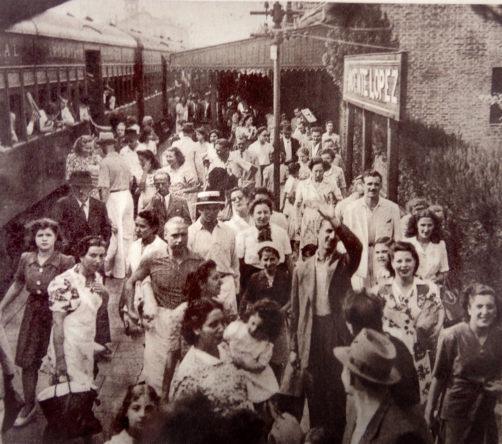 Masiva concurrencia sobre los andenes de la estación Vicente López del ferrocarril Mitre, Ramal Retiro - Tigre. La estación se fundaría en el año 1891.