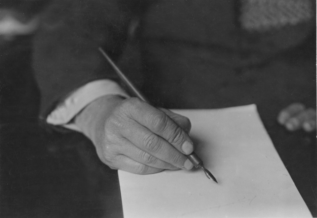 Domingo Fernández Beschtedt, alias Fernán Félix de Amado, escribiendo. Fue un escritor, poeta y periodista argentino que se desempeñó como profesor en la Escuela Nacional de Artes de Buenos Aires y la Universidad de La Plata. Además. escribió diversos libros, entre ellos "El libro de Horas" y "Las lámparas de arcilla". Murió el 26 de diciembre del año 1954, en Olivos.