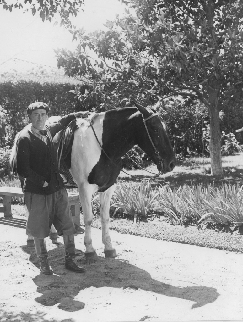 Domingo Fernández Beschtedt, alias Fernán Félix de Amador, paseando por su quinta de Olivos, 1934. Fue escritor, poeta y periodista argentino que tuvo una importante trayectoria como docente y a nivel académico. Falleció en Olivos, en el año 1954.