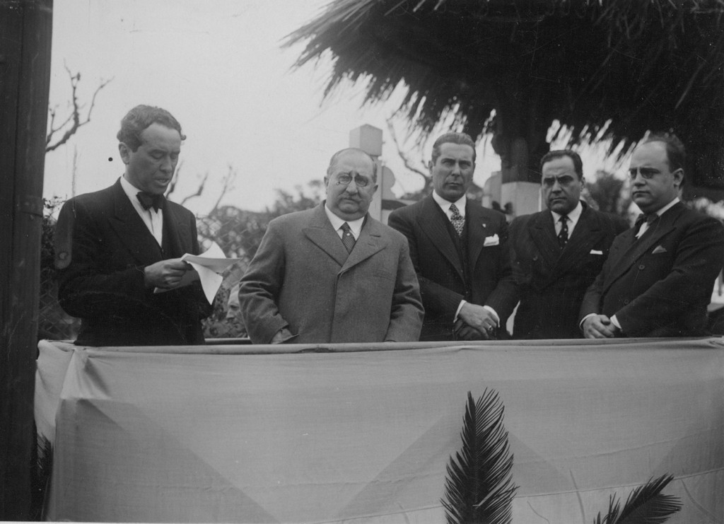 Domingo Fernández Beschtedt, alias Fernán Félix de Amador, habla en un acto en homenaje al Dr. Salvador Debenedetti, junto al Rector de la Universidad de Buenos Aires, Vicente Gallo y otros, en Olivos en 1934. Fue escritor, poeta y periodista argentino que tuvo una importante trayectoria como docente y a nivel académico. Falleció en Olivos en el año 1954.
