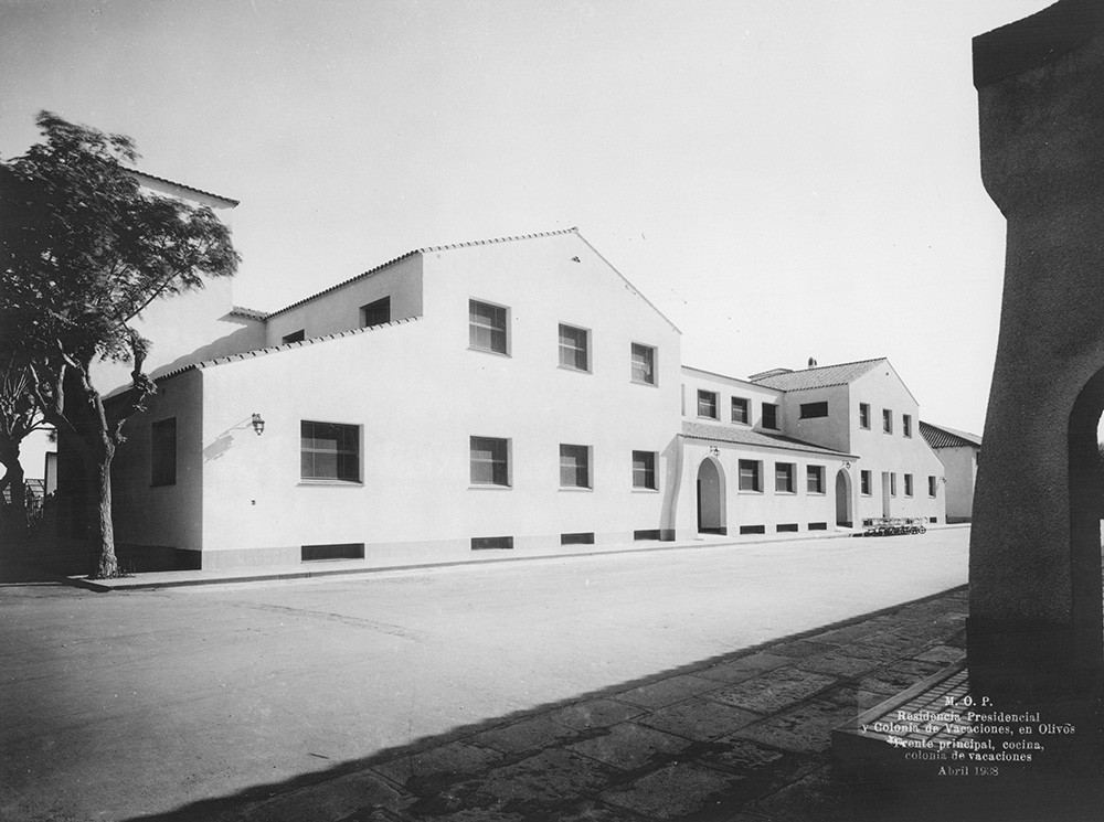 Frente principal y cocina de la Residencia Presidencial de Olivos, cuando funcionaba allí la colonia de vacaciones, en abril de 1938.