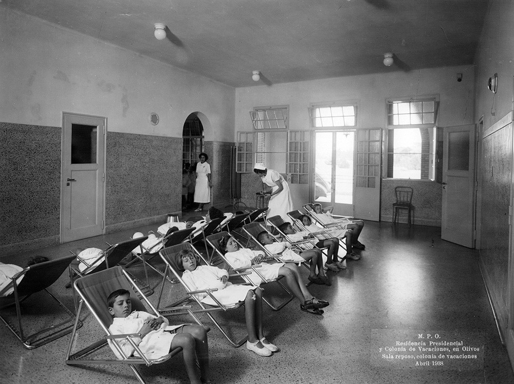 Sala reposo de la Residencia Presidencial de Olivos cuando funcionaba allí la colonia de vacaciones, en abril de 1938.