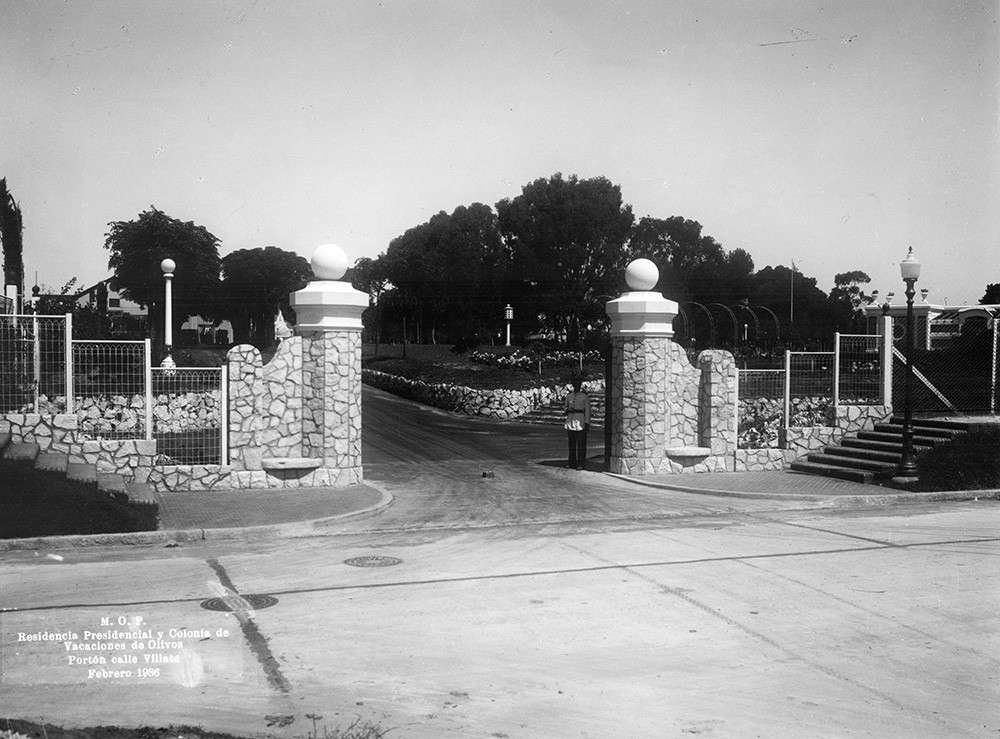 Pórtico de acceso a la Quinta Presidencial de Olivos, ubicado en la calle Carlos Villate, en febrero de 1936.