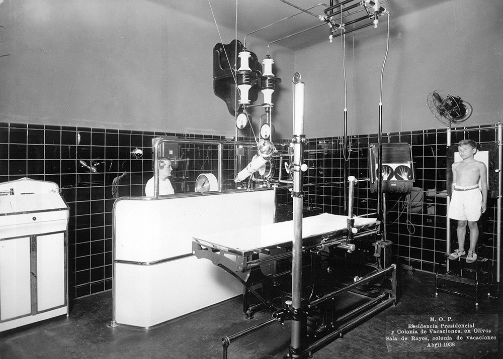 Niño a la espera de realizarse estudios en la sala de rayos de la Residencia Presidencial de Olivos en abril de 1938.