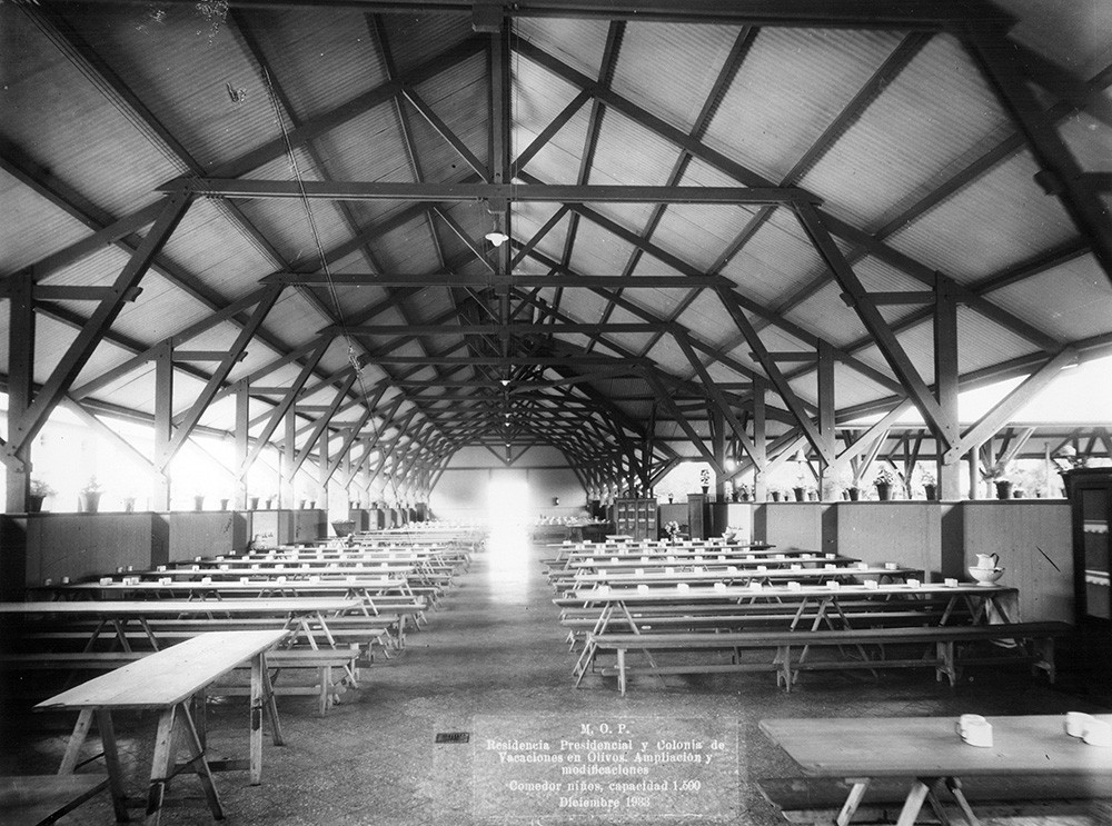 Esta imagen captura la ampliación y modificaciones en la Residencia Presidencial, específicamente en el comedor que llegaría a ampliarse hasta albergar una capacidad para mil quinientos niños. El terreno de la quinta fue donado por Carlos Villate Olaguer, su antiguo propietario, para que fuera utilizada por los futuros gobernantes de la nación como su residencia de verano.