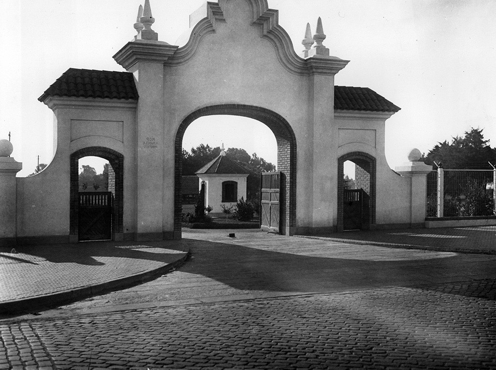 El pórtico sobre la actual Av. Maipú, que marcaba la entrada principal de la antigua cabaña Azcuénaga, posterior residencia de Carlos Villate Olaguer, quien donó el terreno de la quinta para que fuera utilizada por los futuros gobernantes de la nación como su residencia de verano. La donación fue aceptada en el año 1918 por el entonces Hipólito Yrigoyen (mandato 12/10/1916 - 12/10/1916 y 12/10/1922 - 6/9/1930).