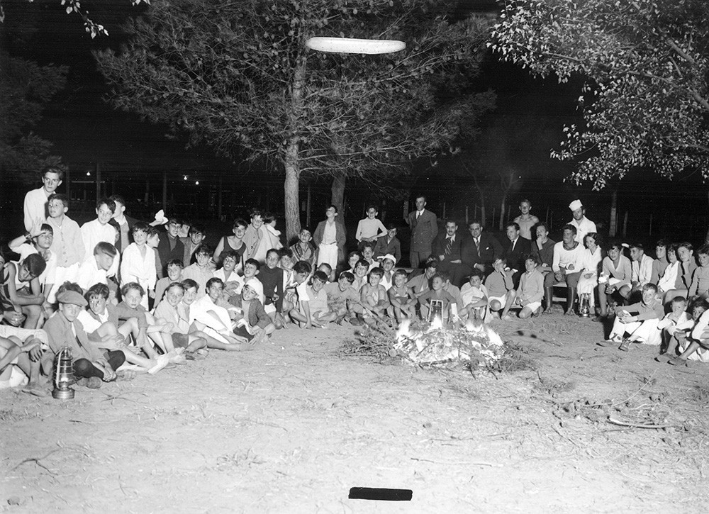 Fogón durante la colonia de vacaciones de la Residencia Presidencial de Olivos en marzo de 1933. Los niños miran una obra teatral después de la cena.