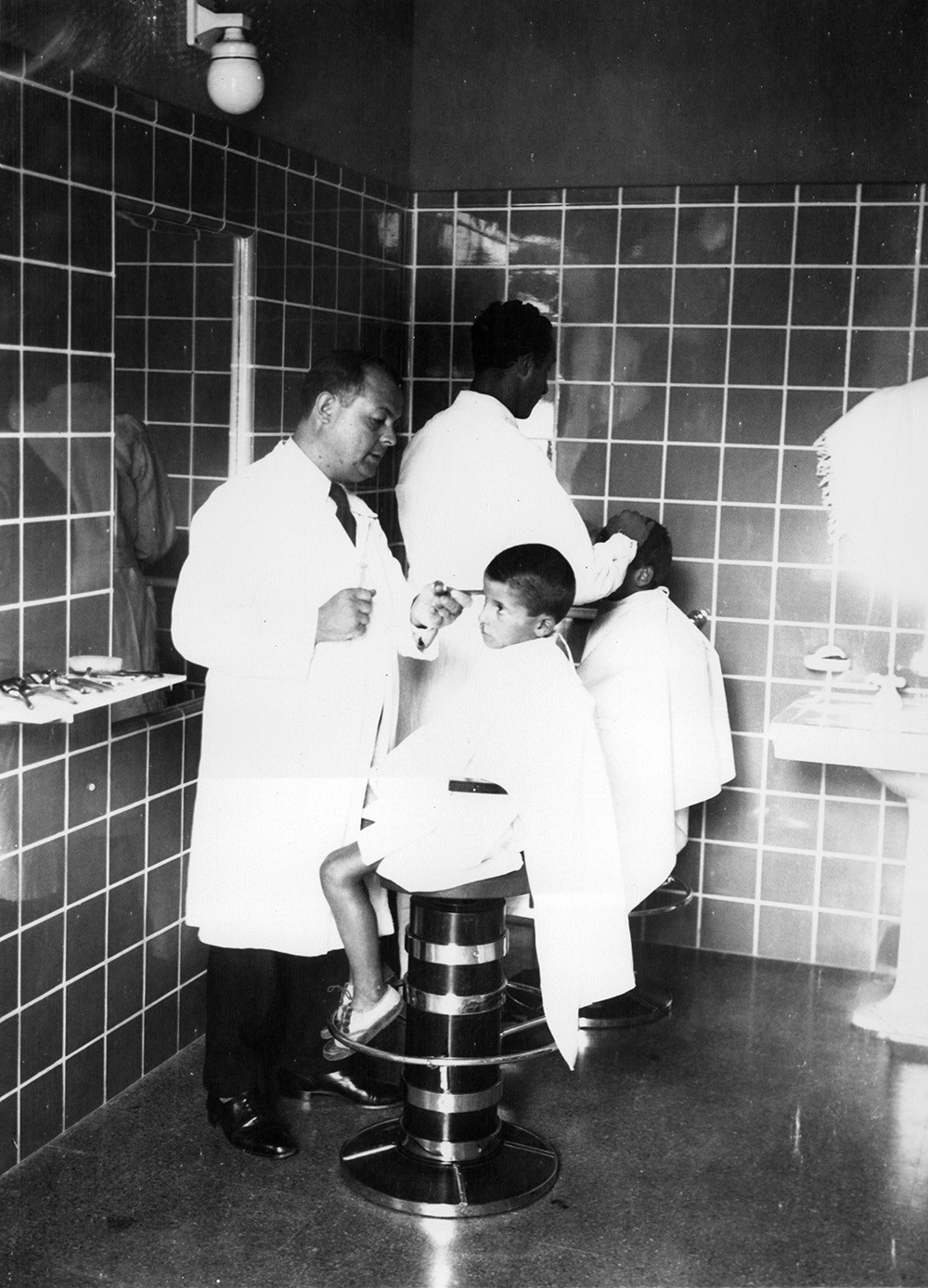 Sección peluquería en la colonia de vacaciones que se desarrollaba en la Residencia Presidencial de Olivos.
