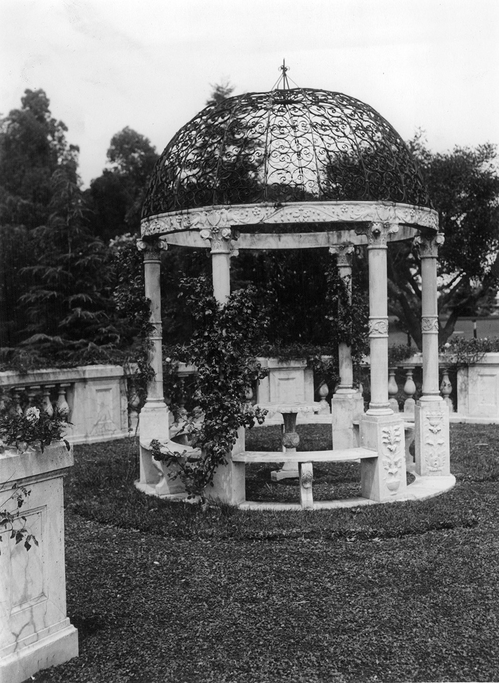 Templete en el jardín de la Quinta La Lucila-Anchorena, una joya arquitectónica que enriquecía este espacio natural. La quinta, en la que luego se construiría el Palacio homónimo, fue donada por Nicolás Paulino Anchorena a su hermana, Lucila. Ella luego se casaría con Alfredo F. Urquiza, nieto de Justo José de Urquiza.