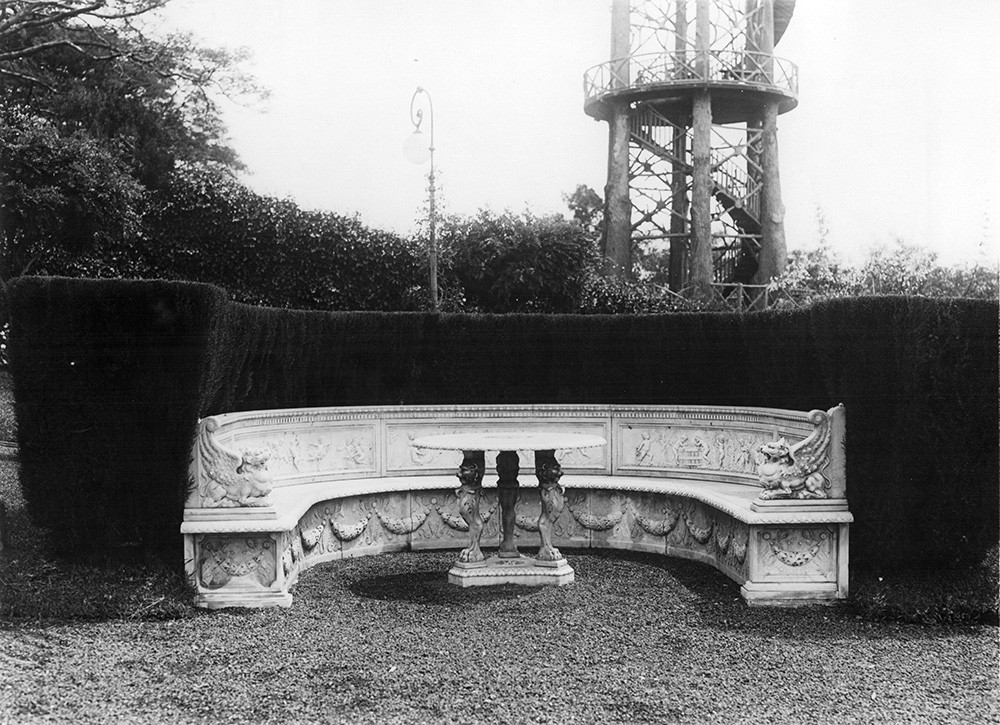 Jardín de la Quinta La Lucila-Anchorena. La quinta, en la que luego se construiría el Palacio homónimo, fue donada por Nicolás Paulino Anchorena a su hermana, Lucila. Ella luego se casaría con Alfredo F. Urquiza, nieto de Justo José de Urquiza.