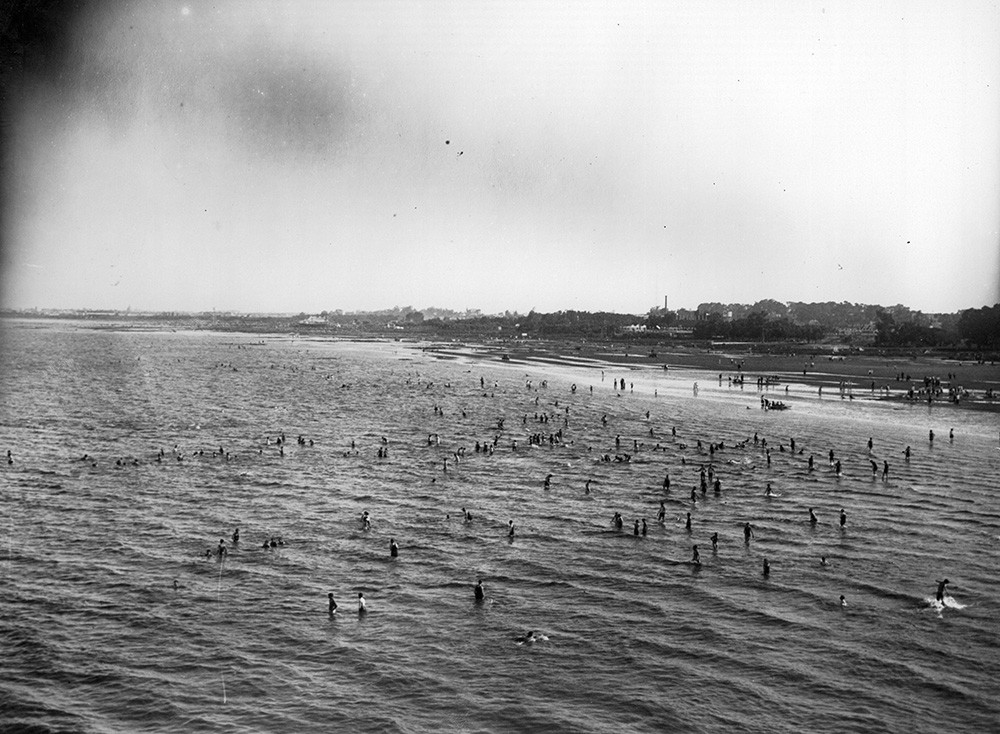 Vista panorámica del balneario El Ancla, uno de los más destacados de la costa de Vicente López. A estas playas llegaban durante el verano numerosos bañistas de diversos lugares a disfrutar de las aguas del Río de la Plata.