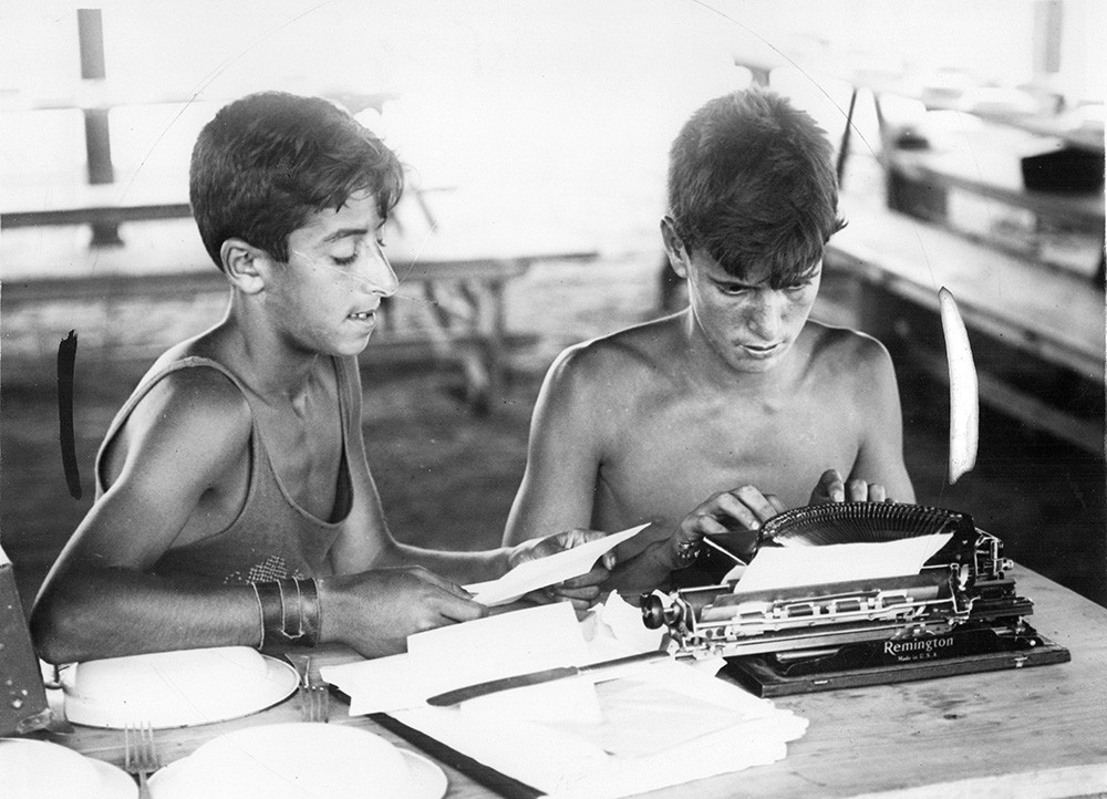 Los niños escriben cartas a sus familias durante la colonia de verano realizada en la Residencia Presidencial de Olivos.