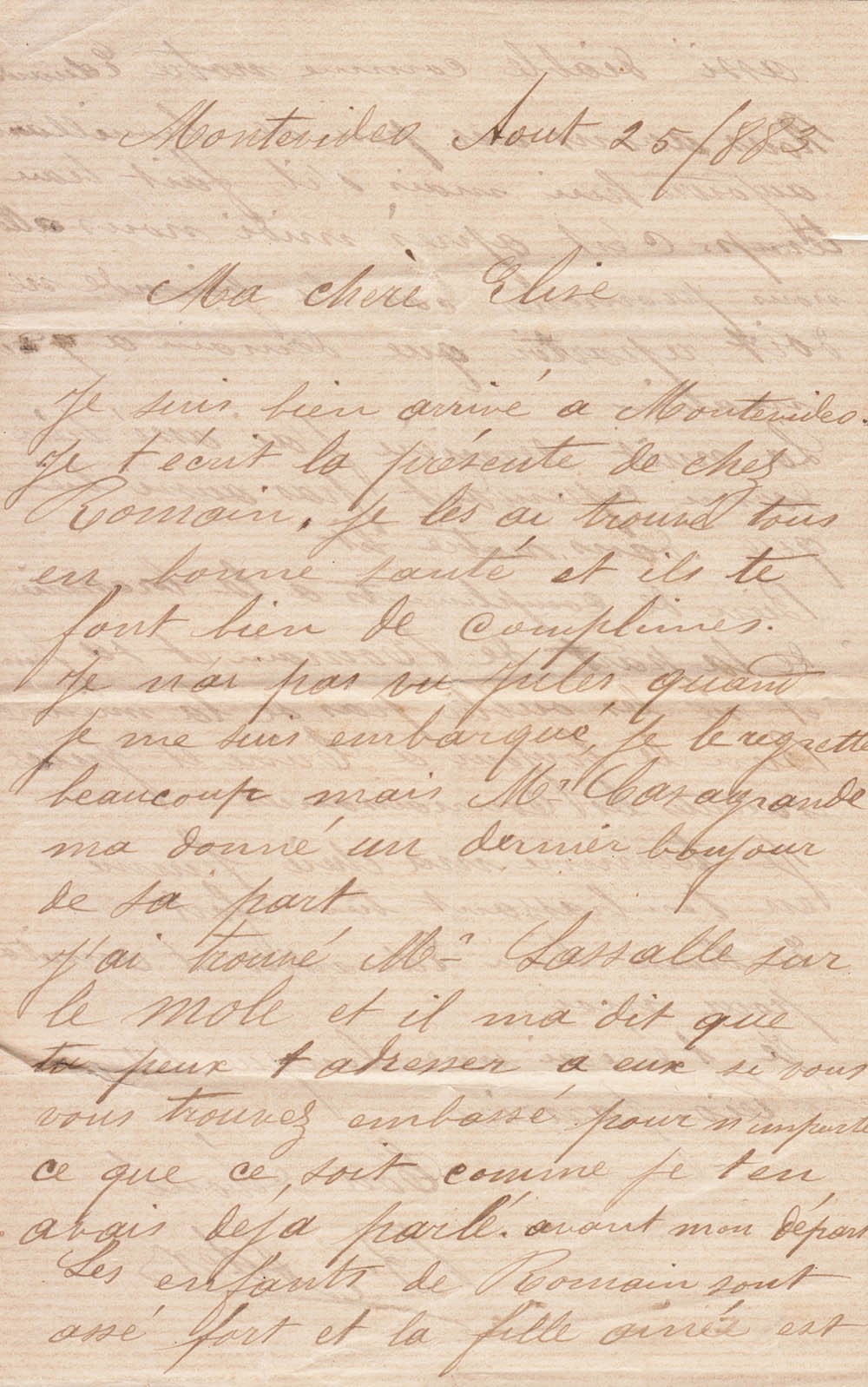 Carta en francés de Bernardo Ader a su esposa Elise Schulze.