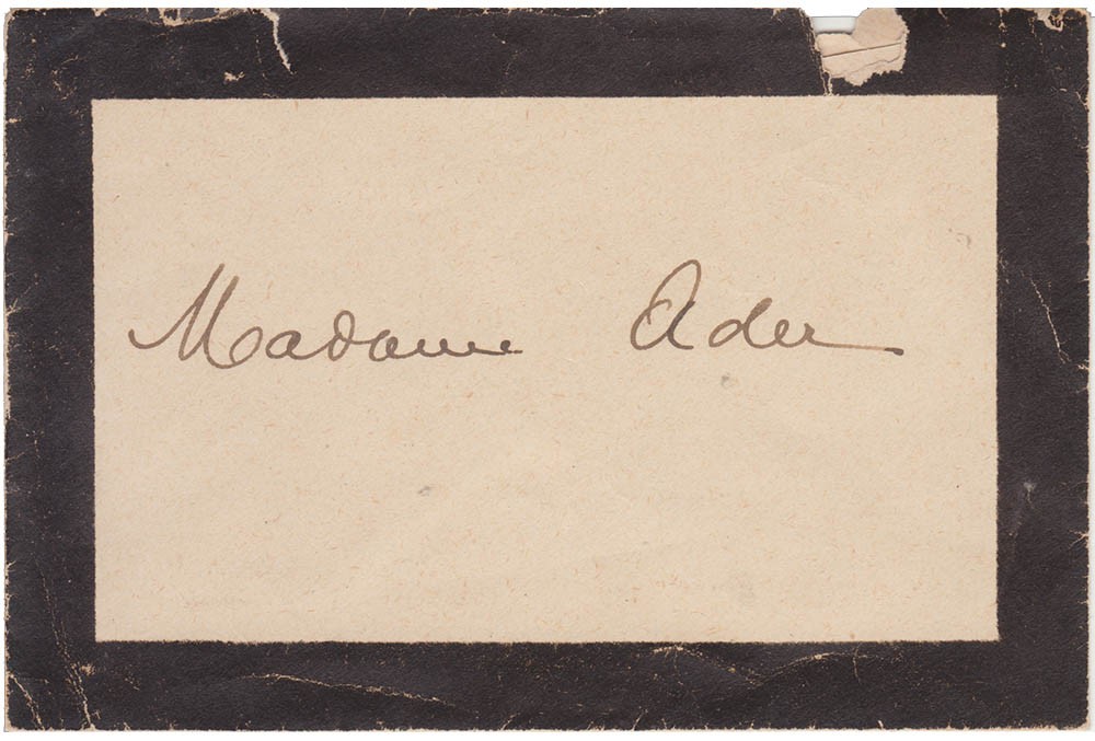 Sobre dirigido a Elise Schulze de Ader, esposa de Bernardo Ader. Un inmigrante vasco francés propietario de una extensión de tierras comprendidas entre los partidos de Vicente López, Gral. San Martín y San Isidro.