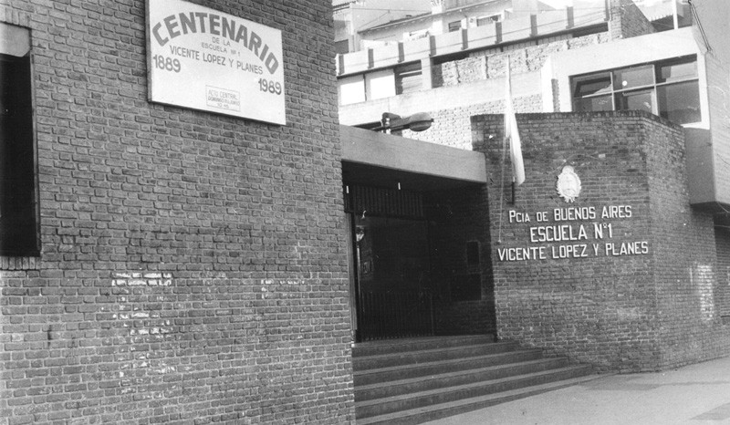 Fachada y entrada principal de la Escuela N.º1 Vicente López y Planes.
