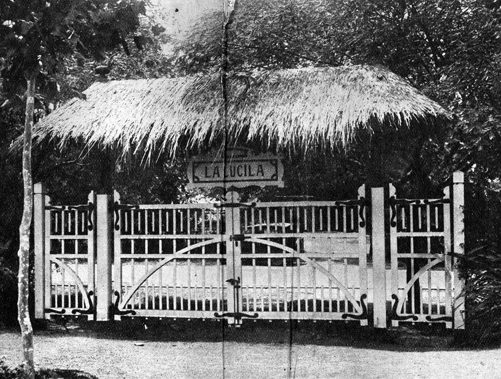 La entrada de la Quinta La Lucila. ubicada en una de las fracciones correspondientes a la extensa Quinta de los Olivos, de la familia Anchorena, las cuales comprendían el área entre las actuales calles Darwin y Debenedetti, el Río de la Plata y la Av. Bartolomé Mitre.