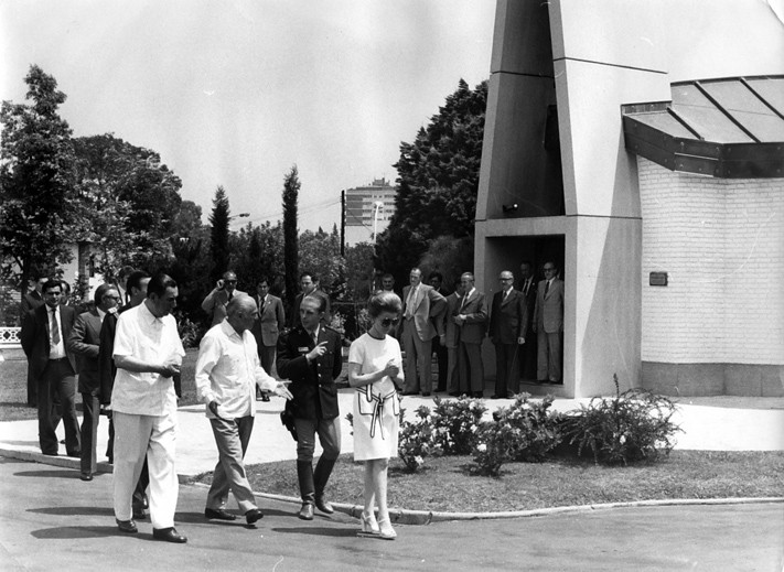 El presidente Juan Domingo Perón y su esposa, la vicepresidenta Isabel Martínez, junto al ministro de Bienestar Social, José López Rega, en la Residencia Presidencial de Olivos, tras el oficio religioso celebrado en la Capilla de Nuestra Señora de la Merced.