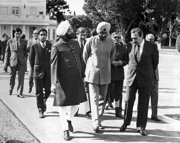 El presidente de la Nación, Raúl Alfonsín, recibe al primer mandatario de la India, Zail Zingh, en la Residencia Presidencial.