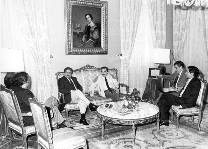El presidente de la Nación, Raúl Alfonsín se reunió en Olivos con los miembros de la CGT (Central General de Trabajadores).