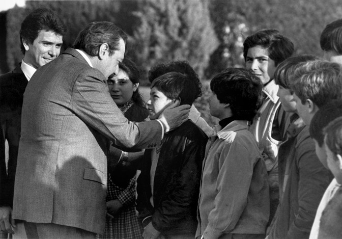 El presidente de la Nación, Raúl Alfonsín, junto al conductor Juan Alberto Badía, recibió en la residencia de Olivos a niños procedentes de cada provincia argentina, con motivo de celebración del día del niño.