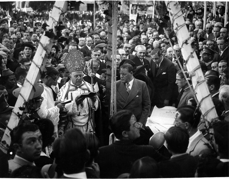El cardenal Santiago Luis Copello durante la bendición de la piedra fundamental de la que luego sería Parroquia Jesús en el Huerto de los Olivos.