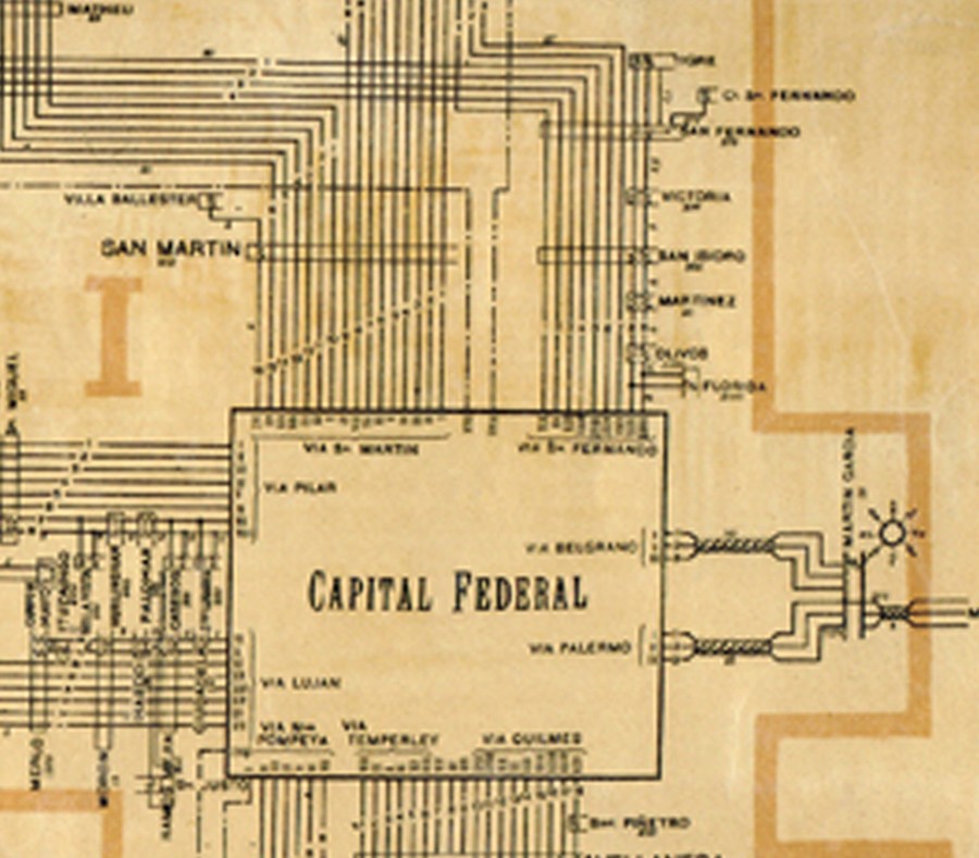 Mapa de la República Argentina con el diagrama general de comunicaciones del telégrafo de la Nación.