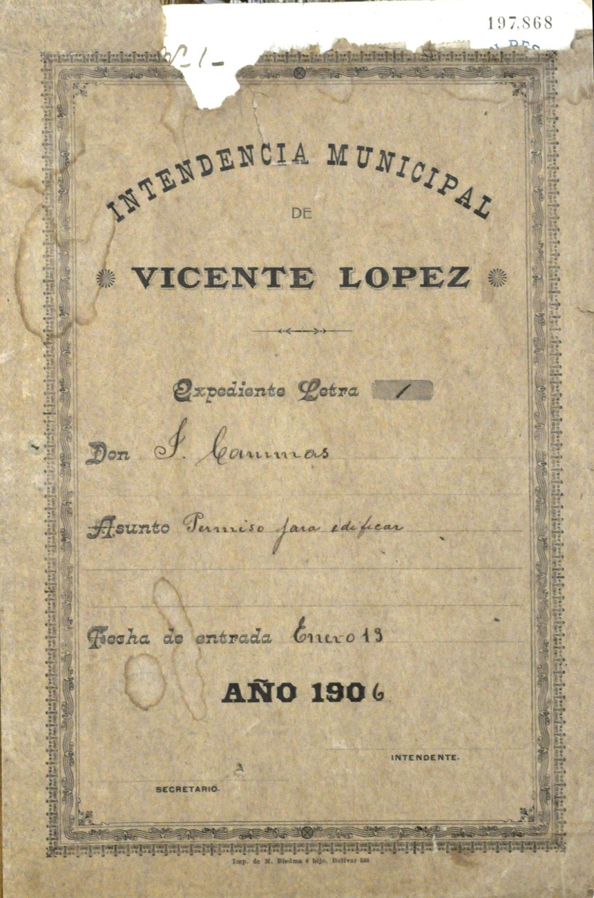Primer expediente emitido por la Municipalidad de Vicente López, fechado el 13 de enero de 1906.