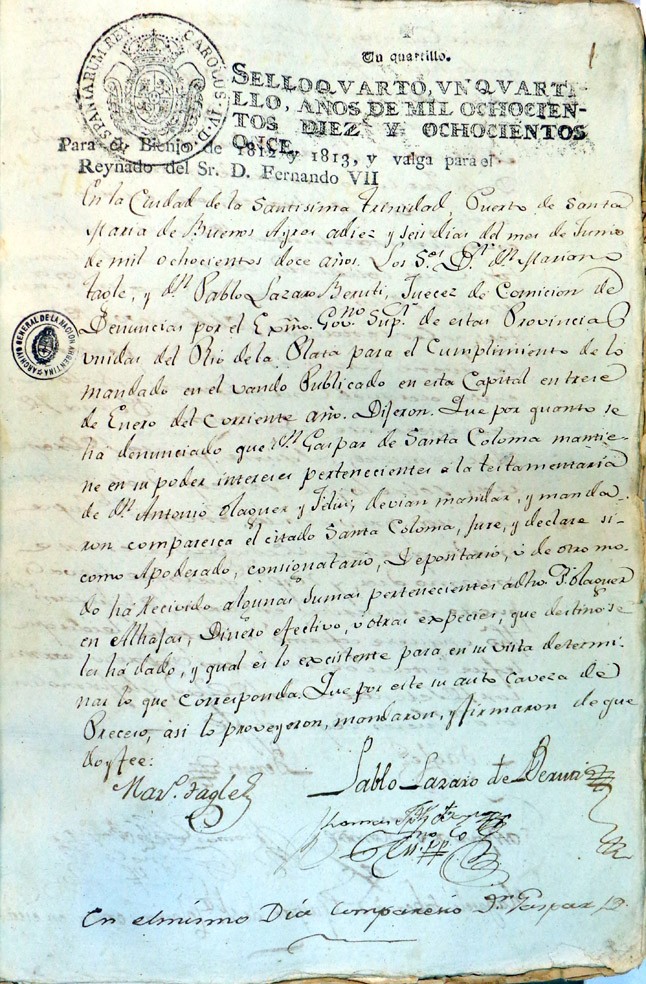 Denuncia a Gaspar Santa Coloma por retención de bienes de la testamentaria de Antonio Olaguer y Feliú, 19 de junio de 1812.