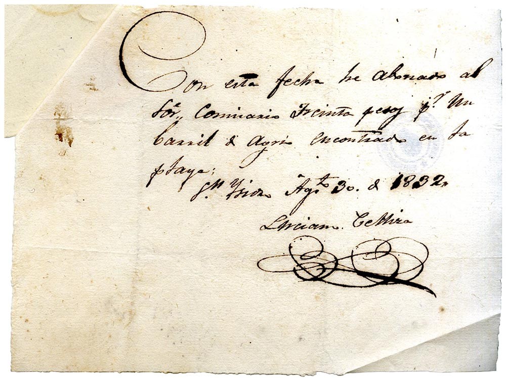 Recibo por venta barril emitido por el juez de Paz y Comisaría del Partido de San Isidro.