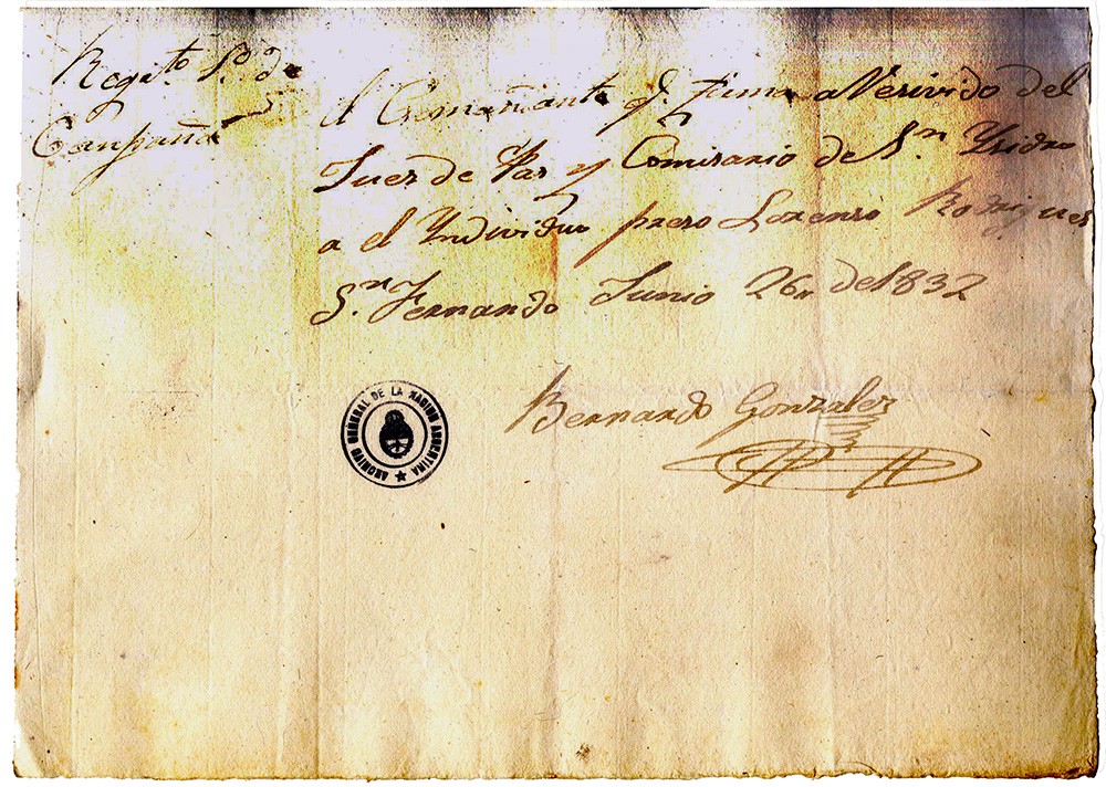 Envío de detenido por el juez de Paz y Comisario de San Isidro.