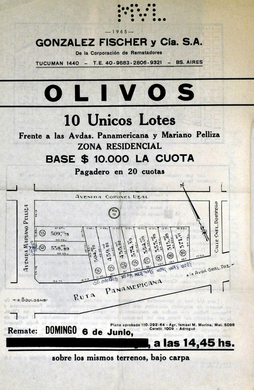 Remate de diez lotes en Pelliza y Panamericana de González Fischer y Cía.