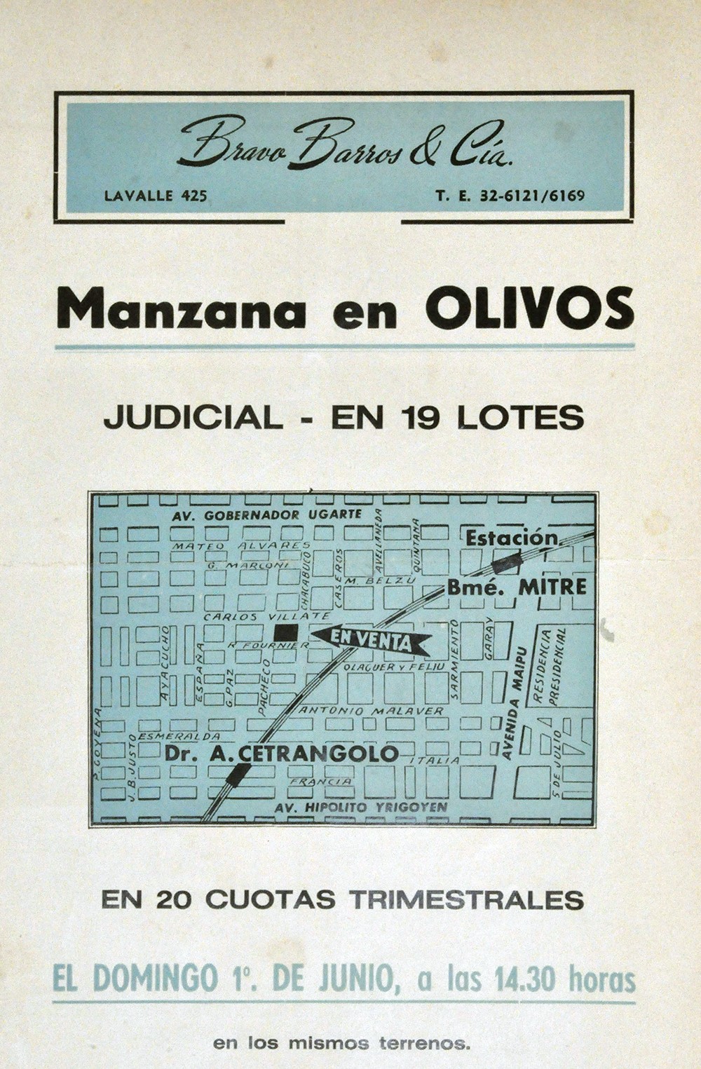 Remate judicial de diecinueve lotes en Olivos, a cargo de Bravo Barros y Cía.