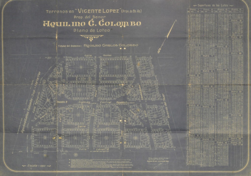 Remate de terrenos en Vicente López pertenecientes al Sr. Aquilino C. Colombo, realizado en junio de 1938.