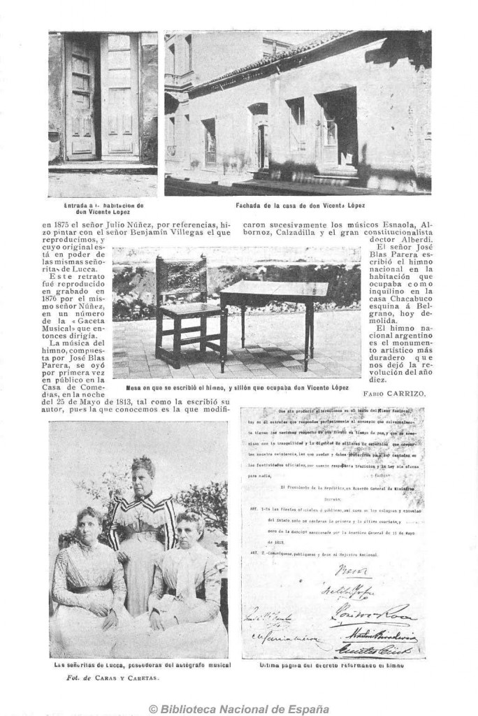 La edición n.º 79 de la revista Caras y Caretas, publicó un artículo sobre la reforma del Himno Nacional Argentino, por decreto gubernativo, dejando constancia gráfica de todas las particularidades con respecto a su letra y música. Páginas en las que se pueden consignar datos, hasta ese momento, inéditos.