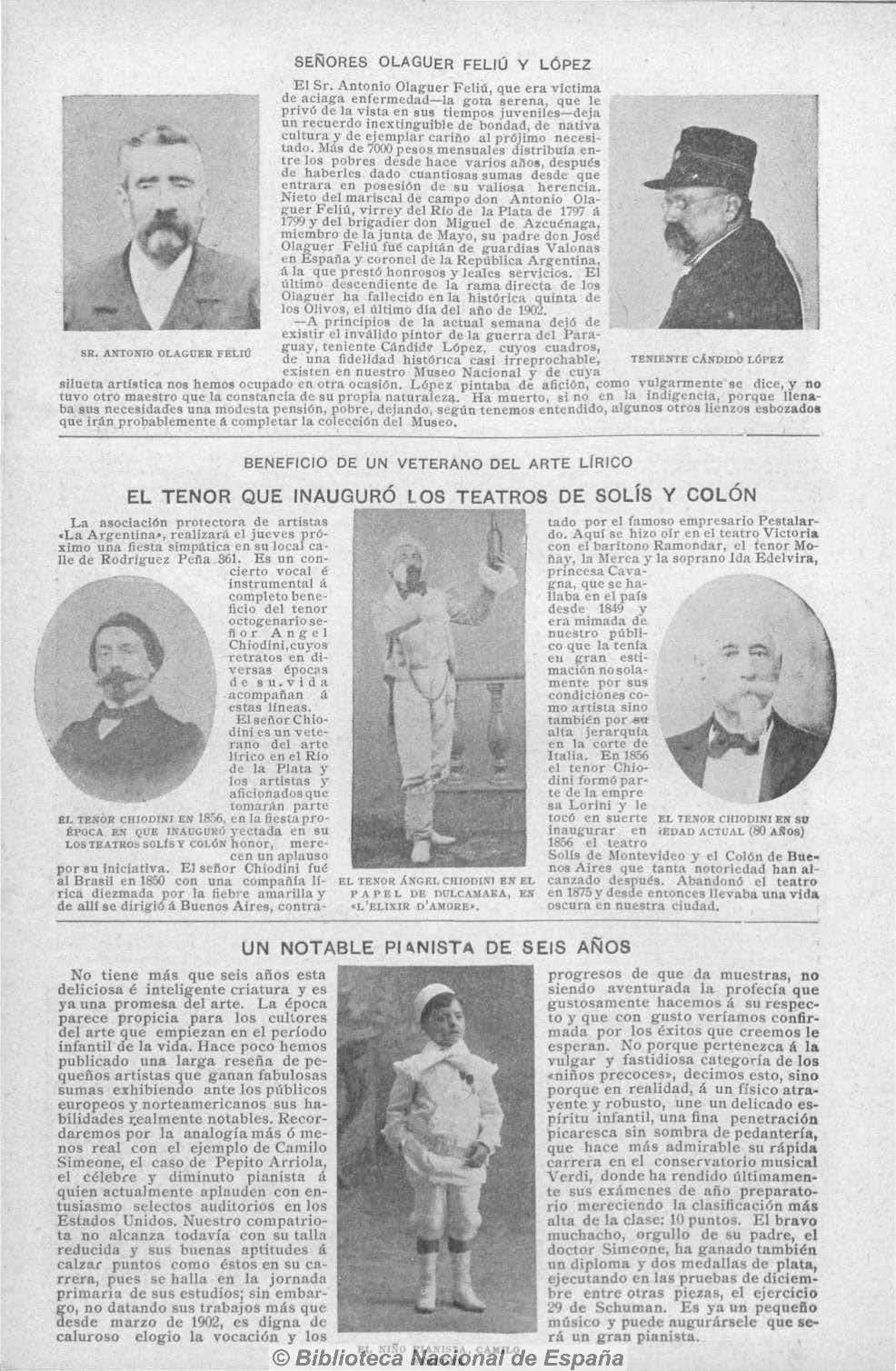 Edición n.º 223 de la revista Caras y Caretas. semanario festivo, literario, artístico y de actualidad, donde publican una nota sobre Antonio Olaguer y Feliú.
