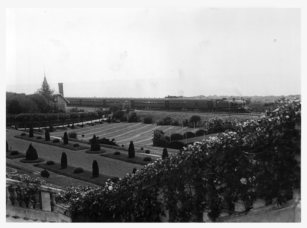 Vista de los terrenos traseros de la antigua Quinta La Lucila-Anchorena, propiedad del Coronel Alfredo F. de Urquiza. Lleva su nombre en homenaje a su esposa, Lucila Marcelina de Anchorena. En el fondo, se distingue una formación del ramal Retiro-Delta del Ferrocarril Central Argentino, actualmente F. C. Gral. Bartolomé Mitre, capturado en diciembre de 1926, pocos años antes de su electrificación.
