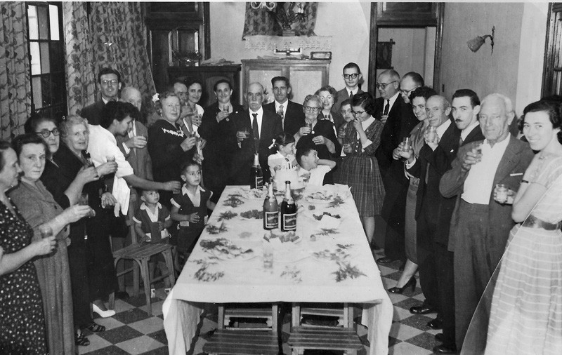 Celebración de las bodas de oro de Marcelino Andrés y Tomasa Martínez en enero de 1957, luego de la Santa Misa, en la Parroquia Nuestra Señora de la Guardia.