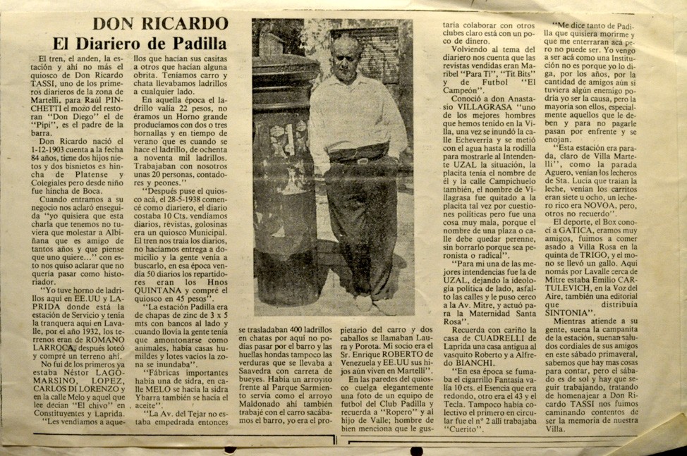 Don Ricardo, el diariero de Padilla, uno de los primeros de la zona, recuerda a los vecinos de la época.