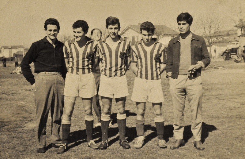Los jugadores, desde la izquierda, Gino Marrafini, Chiche Dellepiane y Gato Vanoni con colaboradores de El Ciclón.
